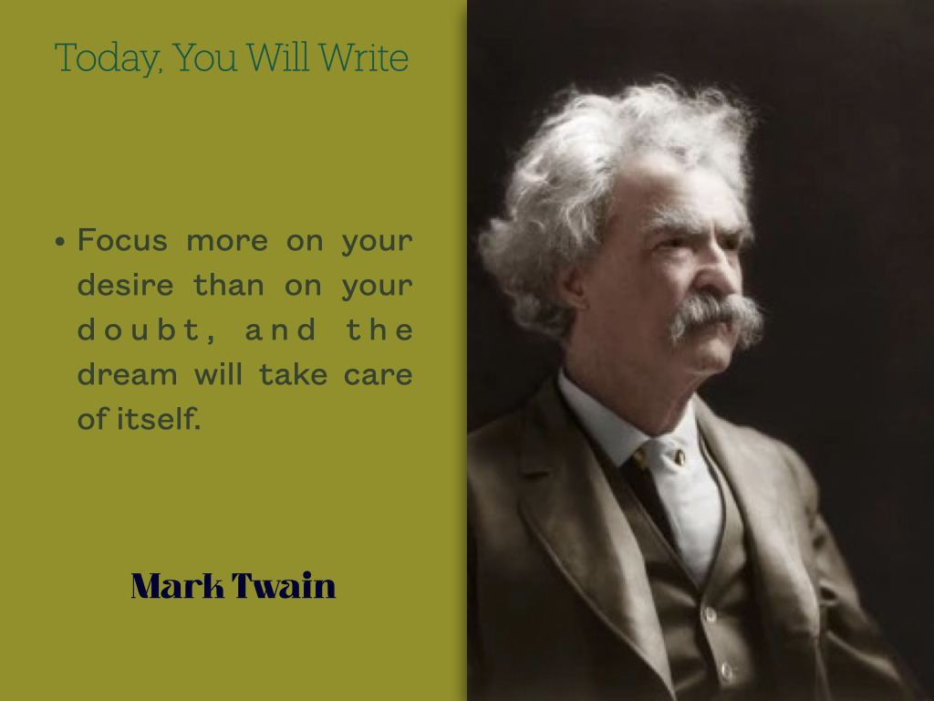 The quote "Focus more on your desire than on your doubt, and the dream will take care of itself" is commonly attributed to Mark Twain, the famous American author and humorist. While there's no verified source confirming he actually wrote or said this exact phrase, it reflects the motivational tone often associated with his wisdom and wit.