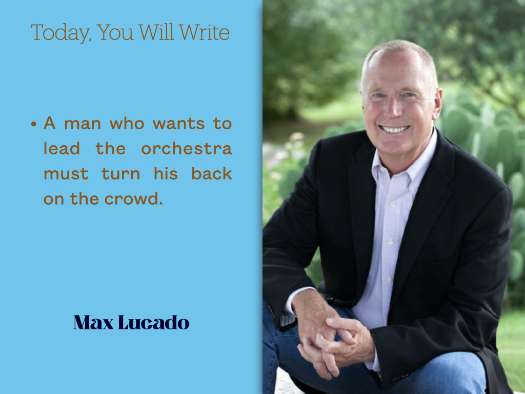 The quote "A man who wants to lead the orchestra must turn his back on the crowd" is attributed to Max Lucado, a Christian author and pastor known for his inspirational messages and books.